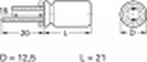 Electrolytic capacitor, insulated aluminum can, type Frolyt EKS. Radial connecting wires for vertical mounting on PCBs. Compliant with DIN IEC 60384-1 Rated voltage 50 VDC.